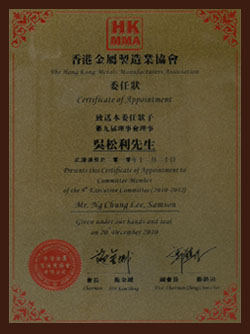 | ISO9001:2008 | ISO/TS 16949:2009 | 香港金属制造业协会委任状 |
